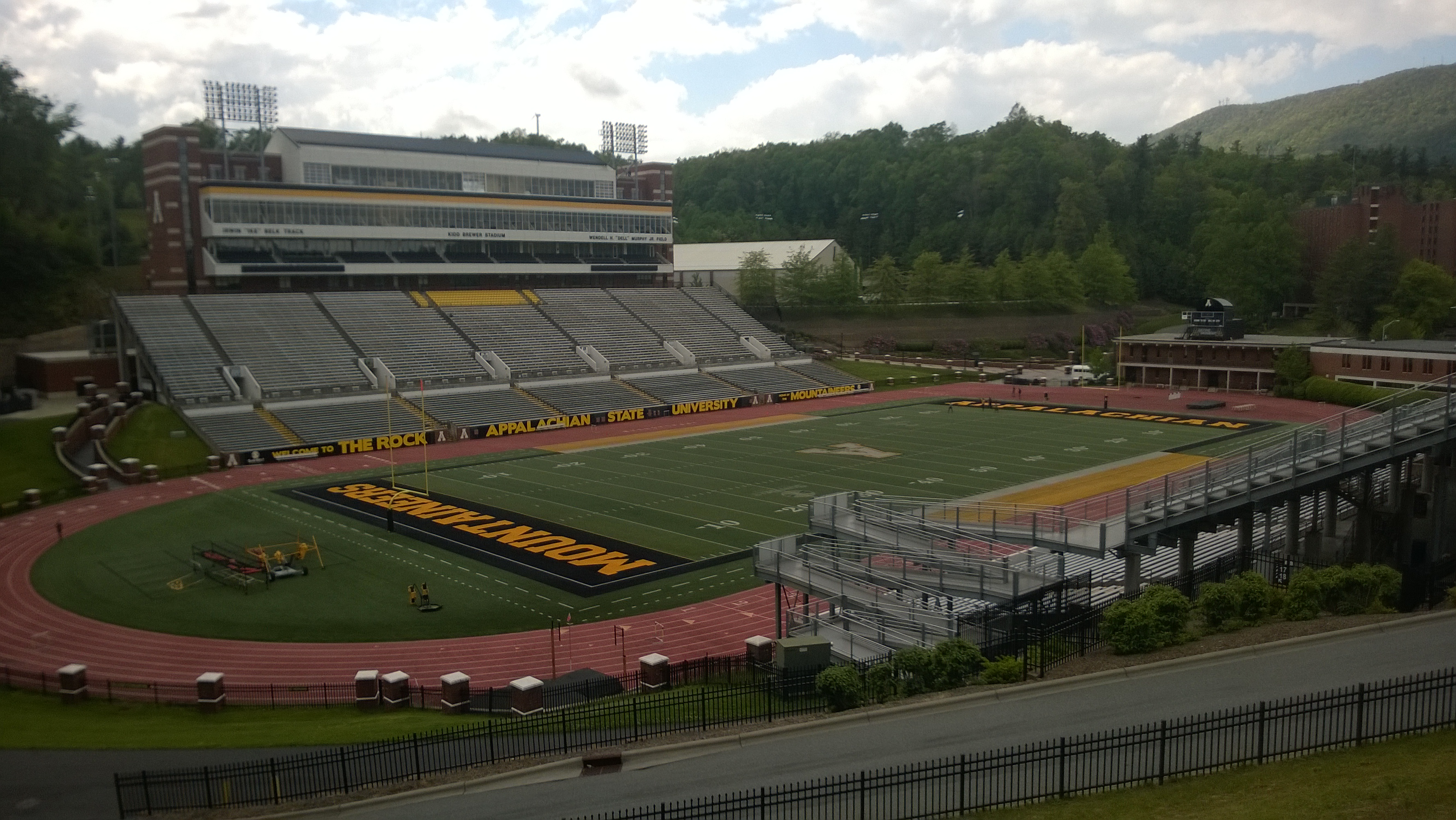This is the biggest reason why UB Stadium sucks. Besides having the eight lane track, the angle between the average seats and the field is so shallow, that it is hard to see what is happening on the field. Take the following pictures from Kidd Brewer Stadium (Appalachian State), which has similar dimensions as UB Stadium.